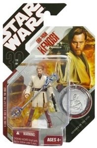 This Obi-Wan Kenobi (General Grievous Duel) toy was added on February 2022 and originally released in 2007 with a retail price of $6.99. This action figure is part of the Star Wars genre within the 30th Anniversary series and included in Wave 1 and is number 05. It can be found online by using the following codes: UPC: 653569198826, Amazon ASIN: B000M6F192 (paid link) and on eBay (paid link). With an average selling price of $7.75, this toy is not very valuable as it's selling for about its original retail price. Quite a few (93) of these toys are in user collections so it does seem to be somewhat popular.