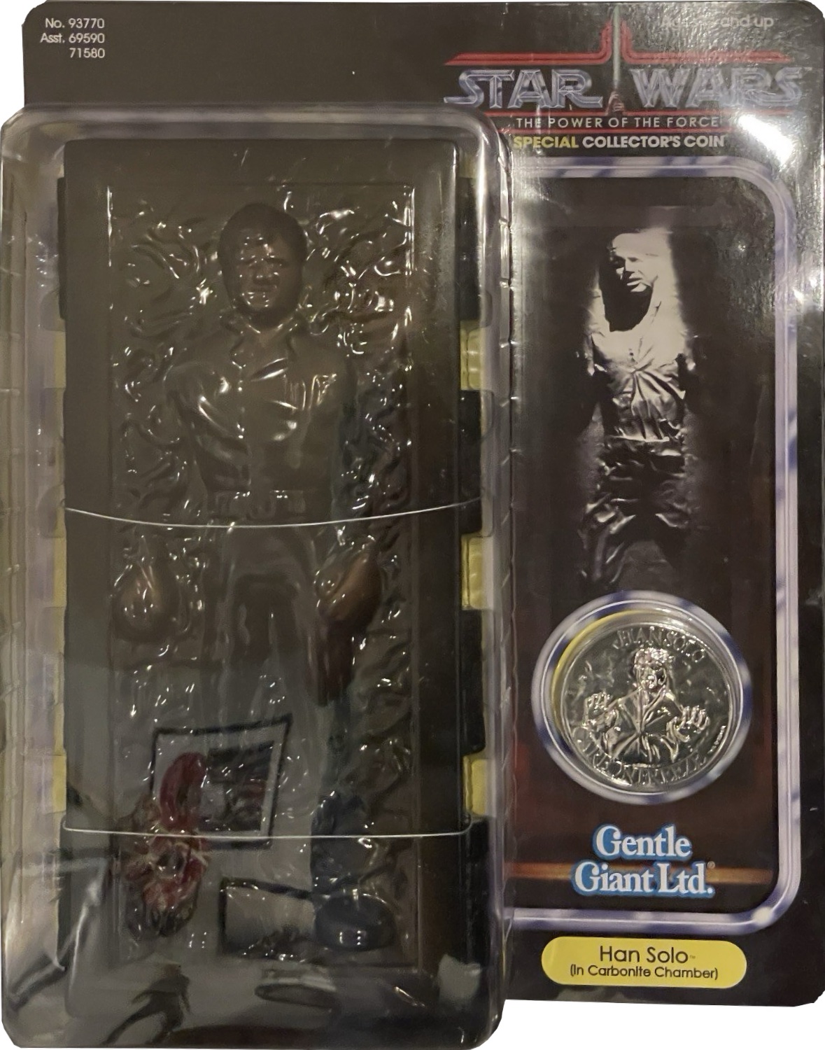 This Han Solo (Carbonite) toy was added on March 2026 and originally released in 2016 with a retail price of $79.99. It may be harder to find this action figure as it's an exclusive to PGM. This action figure is part of the Star Wars genre within the Gentle Giant & Diamond Select series. It can be found online by using the following codes: UPC: 614176021871 and on eBay (paid link). This toy currently has no recent price history so it's not possible to determine the worth. This toy is not found in any user collections. However, this figure was recently added, so it will take some time for collectors to add to their collections.