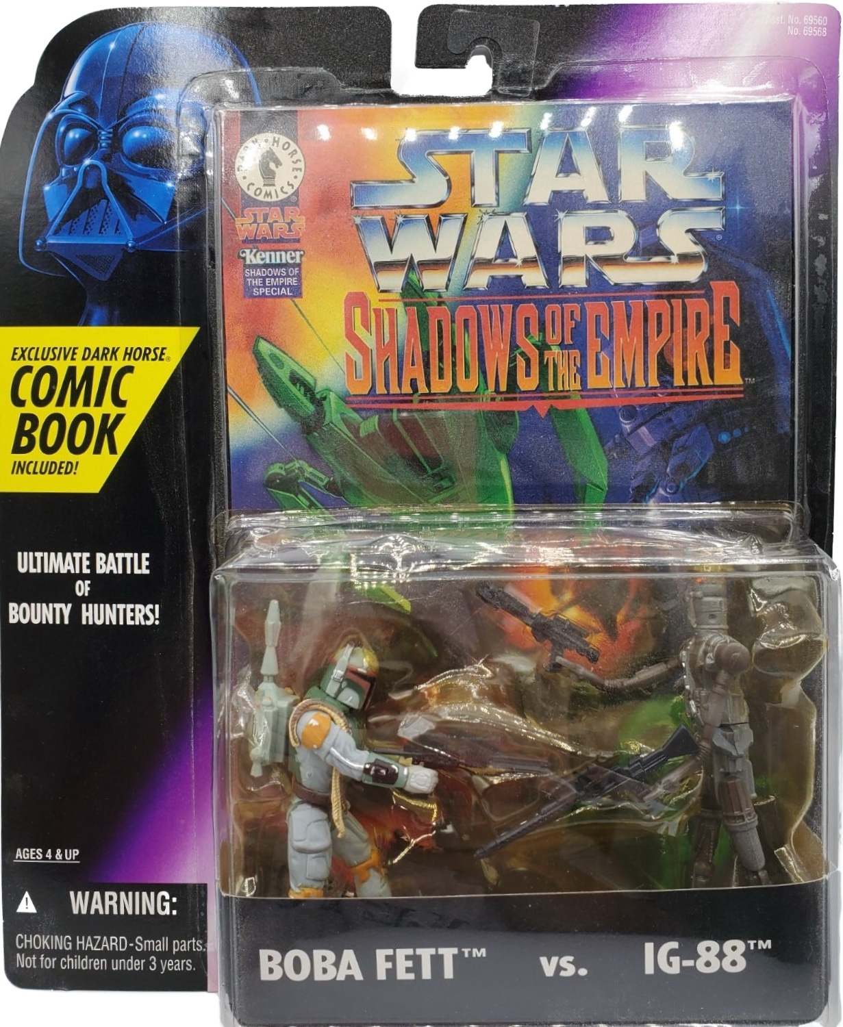 This Boba Fett vs IG-88 (Shadows of the Empire) toy was added on April 2026 and originally released in 1996 with a retail price of $10.99. This action figure is part of the Star Wars genre within the Power of the Force series. It can be found online by using the following codes: UPC: 076281695686 and on eBay (paid link). This toy currently has no recent price history so it's not possible to determine the worth. This toy is not found in any user collections. However, this figure was recently added, so it will take some time for collectors to add to their collections. AFA auctions are considered in determining the value of this item, potentially leading to a greater variance in the price range.