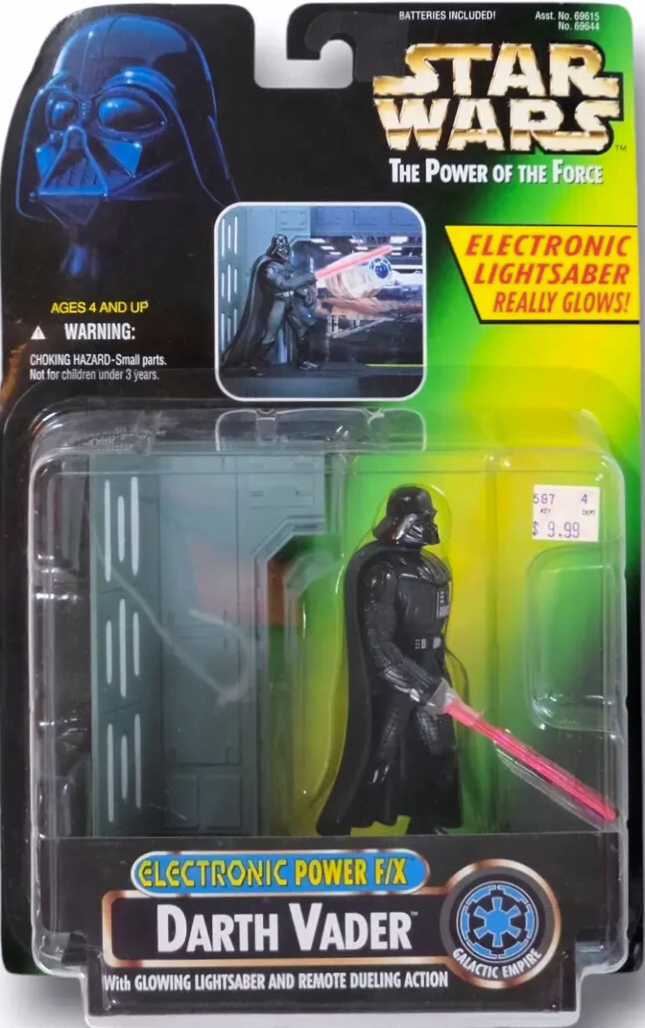 This Darth Vader (Electronic Power F/X) toy was added on March 2026 and originally released in 1997 with a retail price of $9.99. This action figure is part of the Star Wars genre within the Power of the Force series. It can be found online by using the following codes: UPC: 076281696447 and on eBay (paid link). This toy currently has no recent price history so it's not possible to determine the worth. This toy is not found in any user collections. However, this figure was recently added, so it will take some time for collectors to add to their collections. AFA auctions are considered in determining the value of this item, potentially leading to a greater variance in the price range.