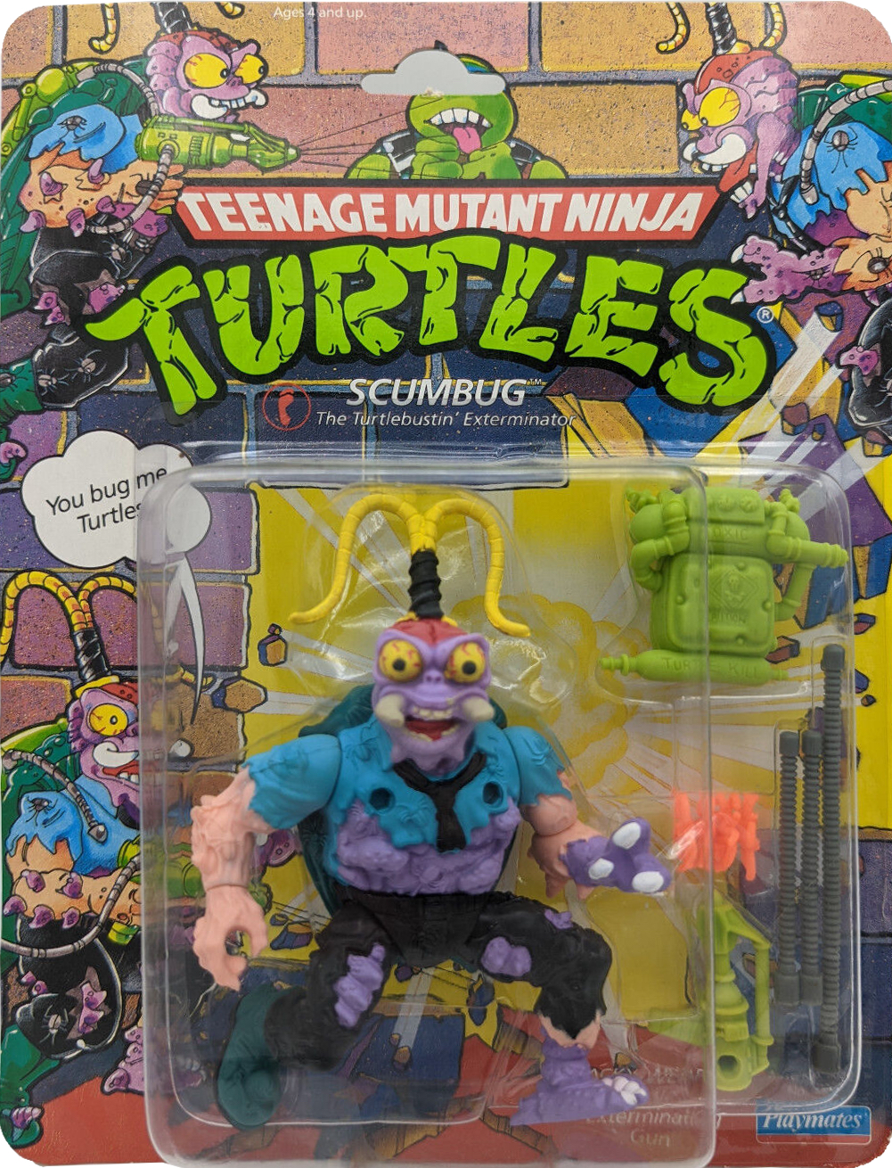 Scumbug is a character from the Teenage Mutant Ninja Turtles (TMNT) series and toy line created by Playmates Toys. Within the extensive TMNT universe, Scumbug was introduced as an action figure in the early toy lines. He wasn't a part of the original comic series by Kevin Eastman and Peter Laird but was instead created for the toy line, which expanded the TMNT universe with many unique characters. This particular toy was released in 1990.