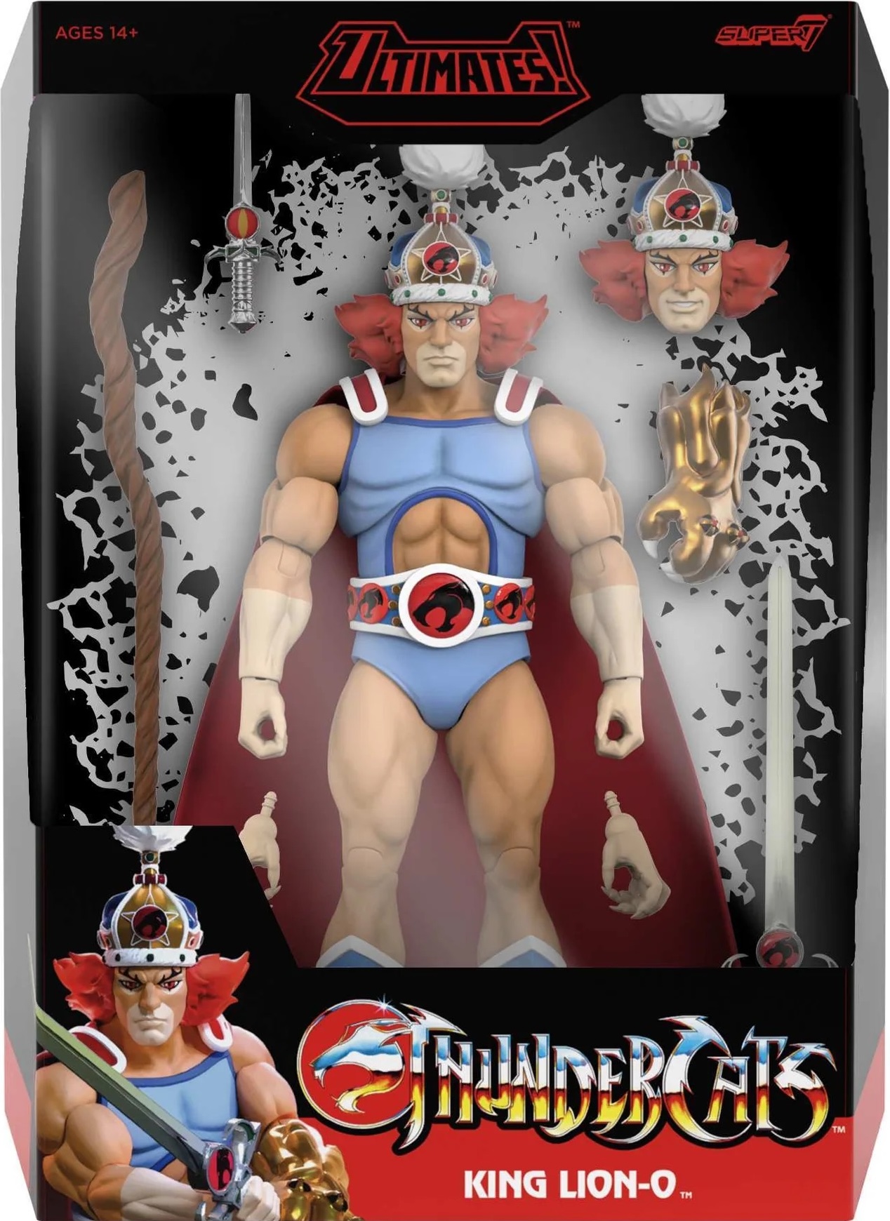 This King Lion-O toy was added on March 2026 and originally released in 2025 with a retail price of $65.00. This action figure is part of the Thundercats genre within the Super7 series and included in Wave 14. It can be found online by using the following codes: UPC: 840049886766 and on eBay (paid link). This toy currently has no recent price history so it's not possible to determine the worth. This toy is not found in any user collections. However, this figure was recently added, so it will take some time for collectors to add to their collections.