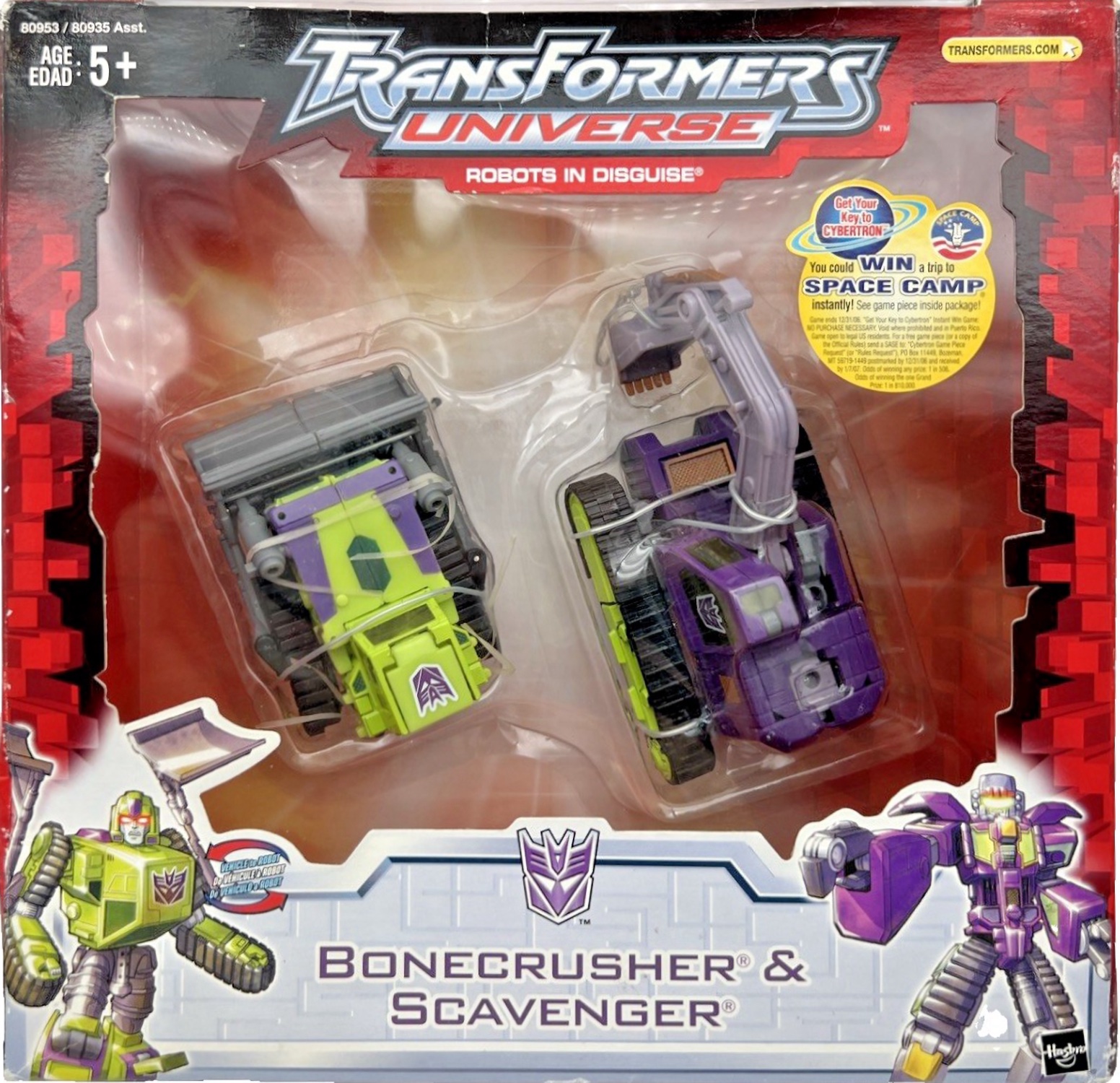 This Bonecrusher & Scavenger toy was added on January 2026 and originally released in 2006 with a retail price of $16.99. It may be harder to find this action figure as it's an exclusive to Target. This action figure is part of the Transformers genre within the Universe series. It can be found online by using the following codes: UPC: 076930809532 and on eBay (paid link). This toy currently has no recent price history so it's not possible to determine the worth. This toy is not found in any user collections. However, this figure was recently added, so it will take some time for collectors to add to their collections.